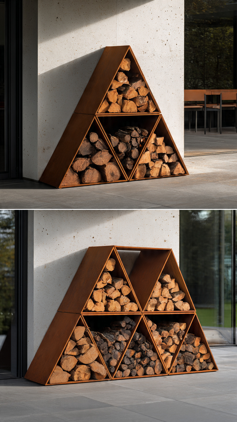 kurie nori ne tik patogiai laikyti malkas, bet ir suteikti savo kiemui modernų, stilingą akcentą. Ši